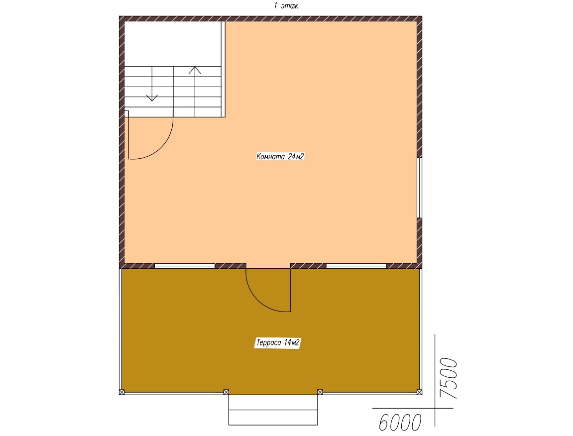 Площадь 1этажа : 24 м2
