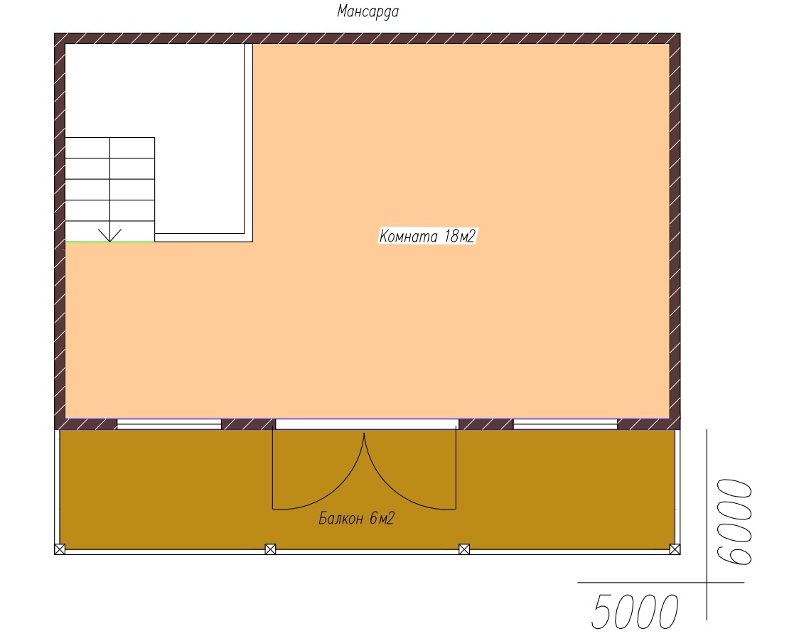 Площадь мансарды: 18м2