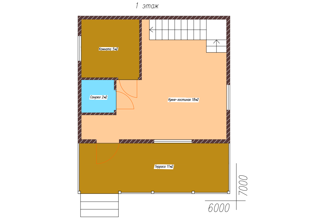Стены: каркасные из бруса 100мм, антисептик, пароизоляция, утеплитель 100мм, ветрозащитная мембрана, обшивка снаружи имитацией бруса, внутри евровагонкой;